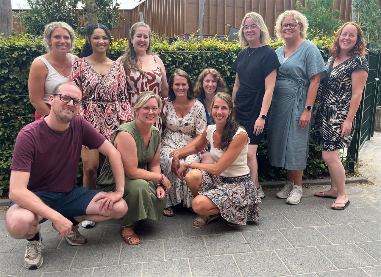 Onderste rij: Juf Linda, Juf Alexia, Juf Eef, Juf Cindy, Juf Madeleen.